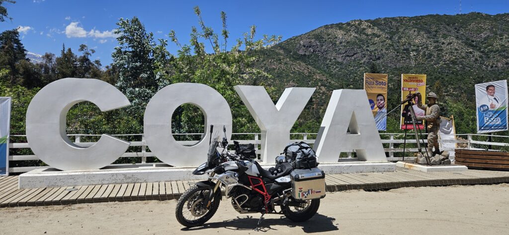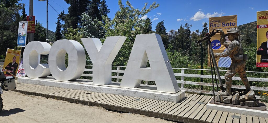 Plan für heute war es wieder auf die andere Seite des Landes an den Pazifik zu wechseln – zur Surfhauptstadt Pichilemu. Aber zunächst wollte ich noch etwas an den Anden entlang fahren und habe einen Abstecher über Coya gemacht – eine alte Arbeiterstadt für eine Kupferminen. Es sind auch noch große Minen in der Umgebung aktiv, aber die Zufahrt wird kontrolliert.