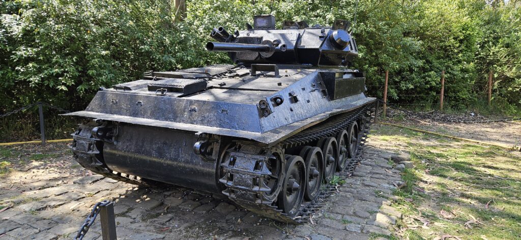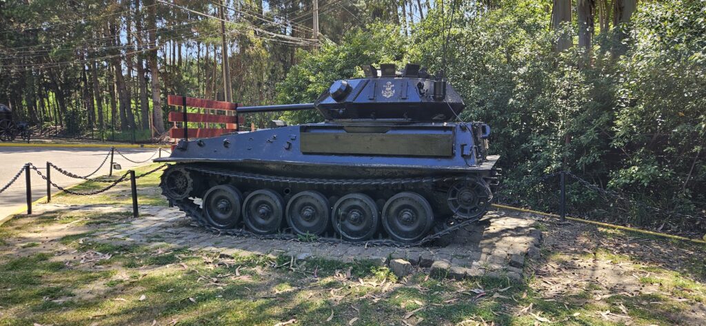 Für die daheim gebliebenen Kollegen aber sicher viel interessanter: die ganze Halbinsel schien Marine-Basis an Marine-Basis zu sein. Und an jedem Zugang mit Wache stand (älteres) technisches Gerät präsentiert. Ein paar Schnappschüsse habe ich mitgenommen: