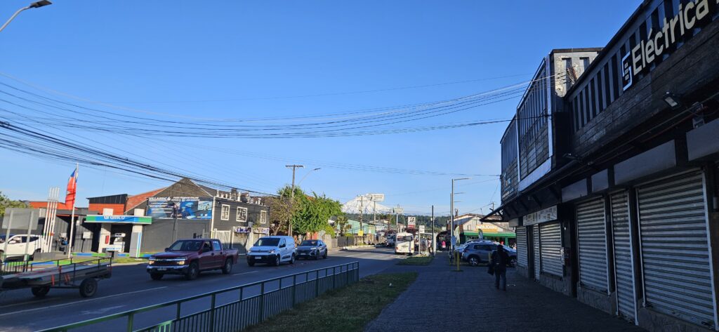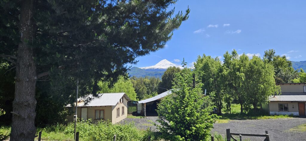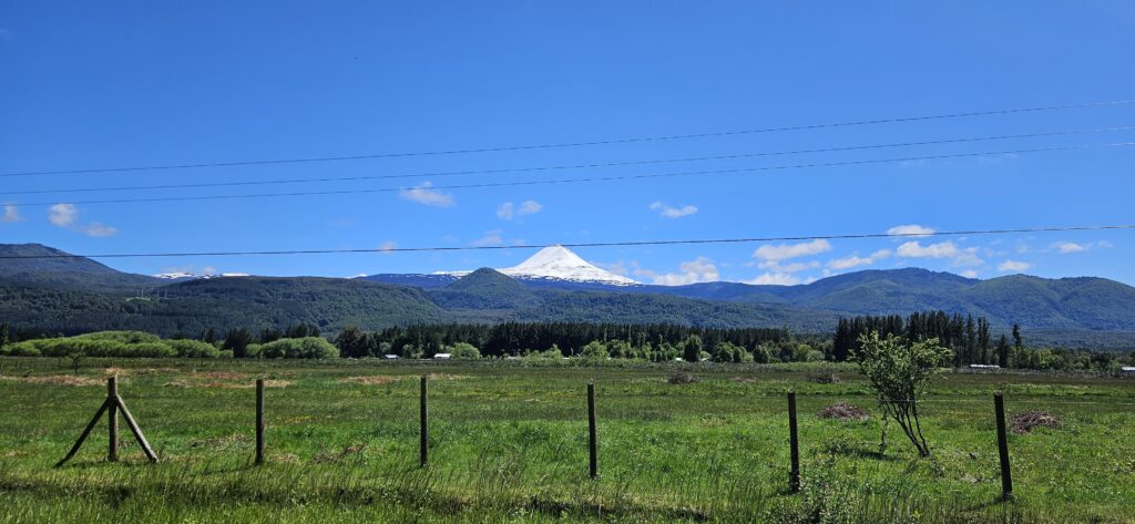 Und dann ging es auch schon los: zunächst raus aus Melipeuco, aber dabei zeigte sich, was gestern verborgen blieb, der Vulkan Llaima: