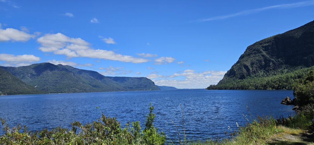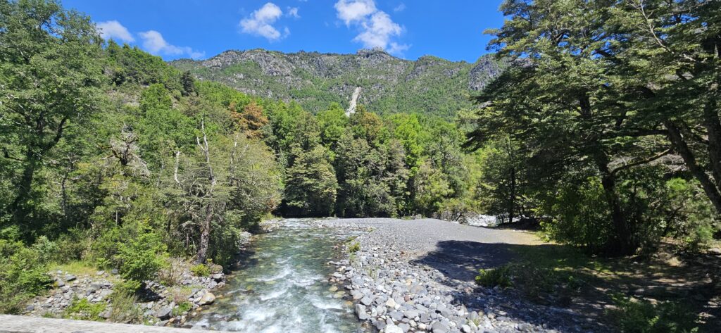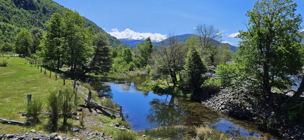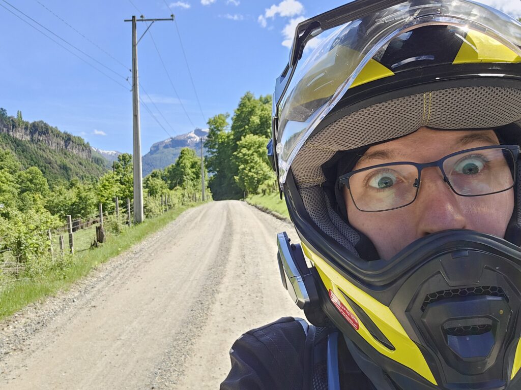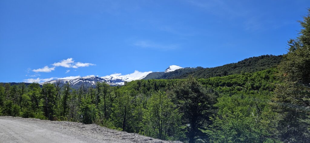 Dann kam ich zum Einstieg des Trail zur Laguna Cochor und mir öffnete sich zum ersten Mal der Blick zum Sollipulli Vulkan – es war nur alles sehr bewaldet und echt schwierig ein gutes Foto zu bekommen. So wirkt es nie so imposant wie in Wirklichkeit… Die Piste ist in entgegengesetzer Richtung sicher noch etwas schöner zu fahren, da sich das Massiv leider die meiste Zeit hinter mir befand.
