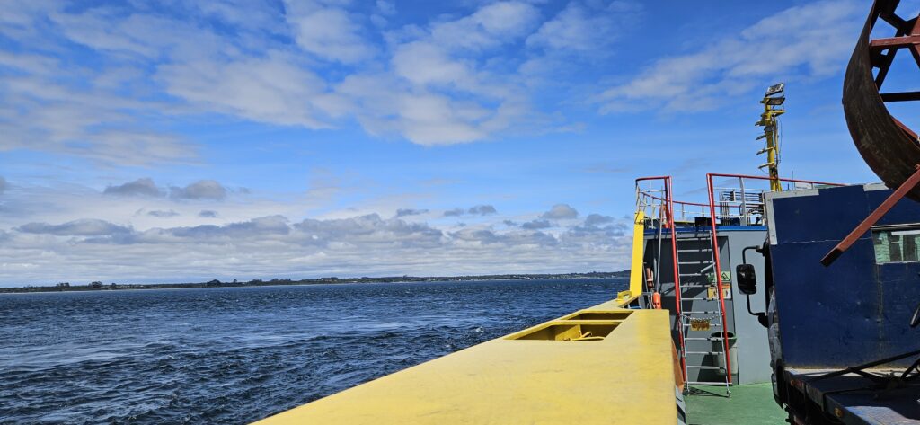 Da die Fährverbindung Teil der Ruta 5 (Panamericana) ist, ist diese sehr einfach organisiert. Hinfahren, den Handzeichen der Einweiser folgen, aufs Schiff rauf und auf dem Schiff die 10 Euro fürs Moped per Karte zahlen, gute 20-30 Minuten rüberfahren. Ich selbst hatte keinerlei Wartezeit, wir mussten nur einige Minuten auf eine frei werdende Rampe am anderen Ufer warten.