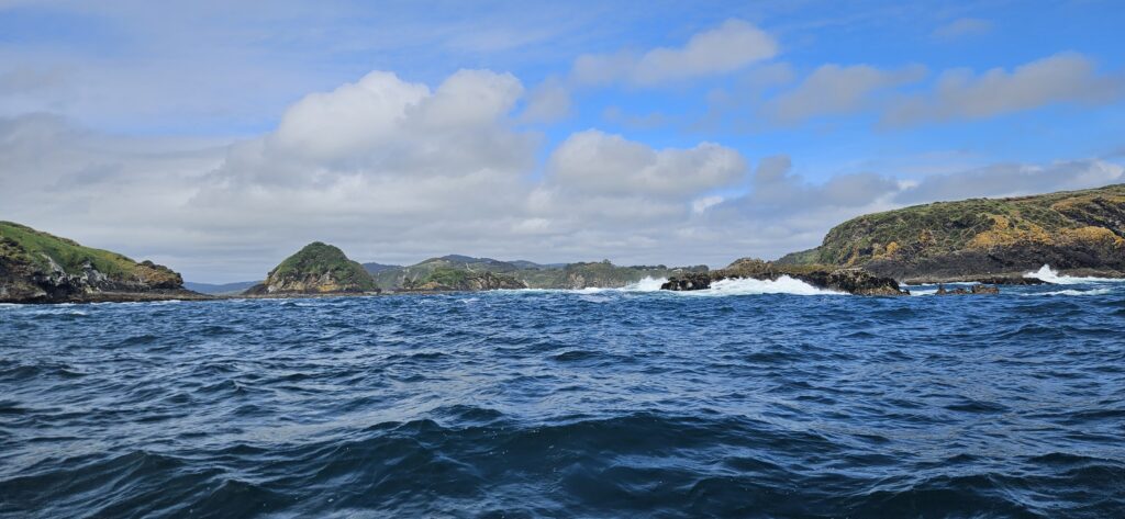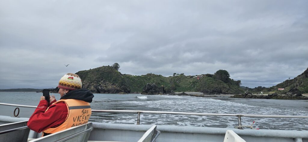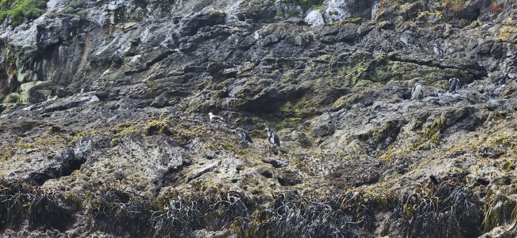 Dort angekommen hieß es dann schon ganz viel “Pinguinos?! Pinguinos?!” – ich musste also nicht viel mehr tun, als mich kurz in eine Passagierliste einzutragen und 10.000 Pesos (9 Euro) zu zahlen – dann ging die gut halbstündige Bootstour los. Bilder gäbe es mit einem Tele natürlich bessere… Aber allein die Fahrt war schon ganz unterhaltsam bei merklichem Seegang.