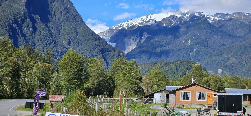 Nachdem kurz vorm Mittag der Schrauber wieder vorbeikam und der Motorstart zwar etwas zickte, aber klappte, hatte ich die Freigabe loszulegen. Also Verkleidungen wieder angeschraubt, Gepäck gepackt und beladen und so kam ich gegen 15 Uhr langsam los auf die 7-stündige Fahrt nach Chaitén.