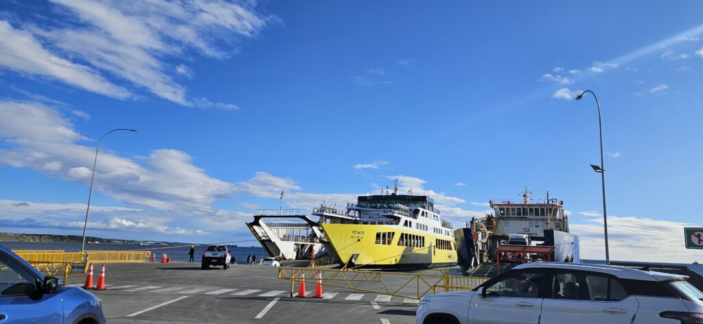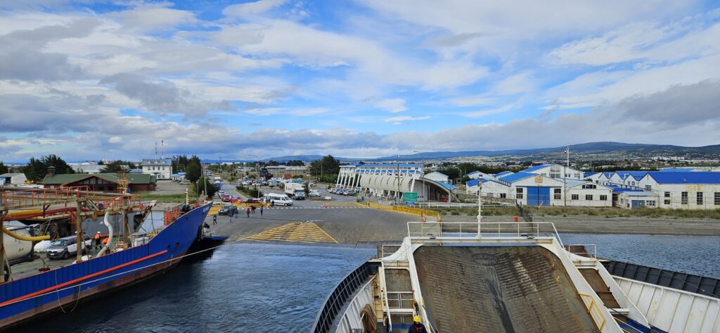 “Früh” am Morgen ging es schon bevor das Frühstück im Hotel begann zur Fähre über die Magellanstraße nach Porvenir und damit auch nach Feuerland!