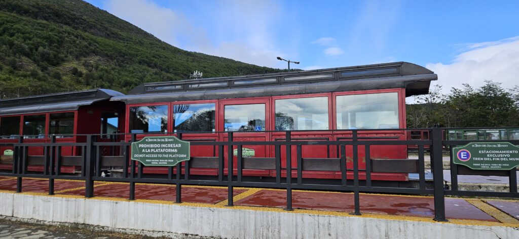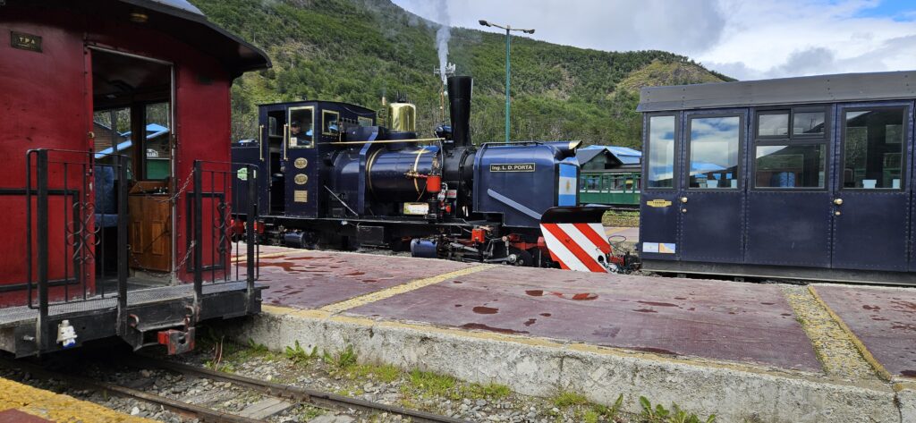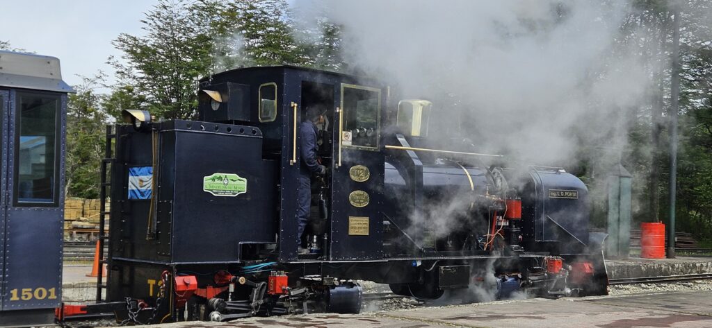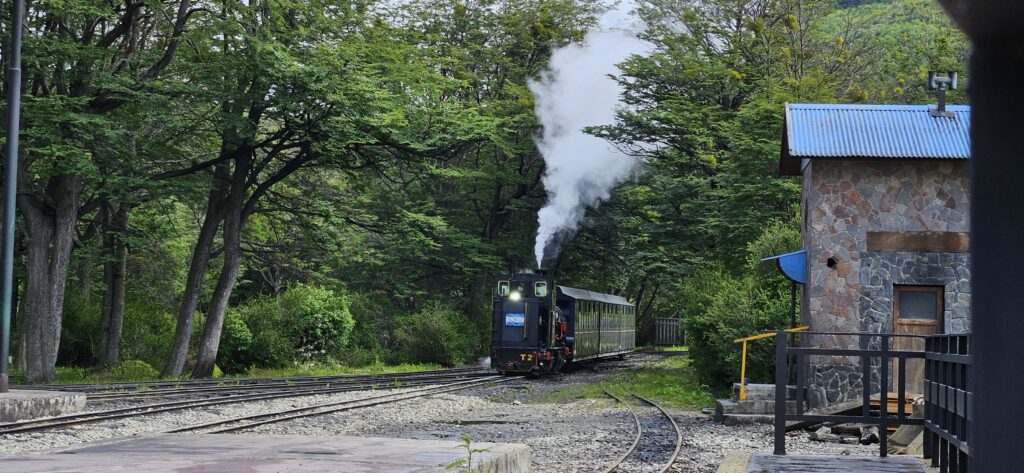 Zunächst bin ich aber doch einmal gen Nationalpark am Rande Ushuaias, zumindest bis zur “Tren del fin del mundo” – Bahn am Ende der Welt. Mit dieser dampfbetriebenen Schmalspurbahn kann man 7km durch die Wälder bis zum Eingang des Nationalparks fahren.