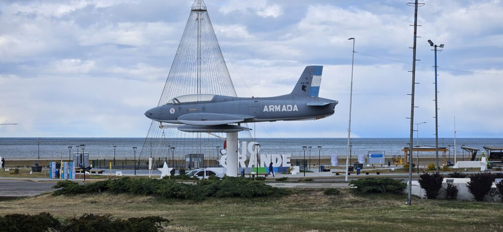 Ich hatte kurz überlegt, ob ich es heute schon bis Río Gallegos schaffe, aber das sind 8h Fahrzeit + Pinguine schauen + Fähre + 2 Grenzübergänge. Also nein, das wäre zu stressig, daher bin ich heute einfach nur wieder zurück nach Río Grande. Diesmal aber mit etwas mehr Zeit, sodass ich auch euch mal einige Eindrücke dieser – wie mir scheint – hauptsächlichen Militärstadt zukommen lassen kann.