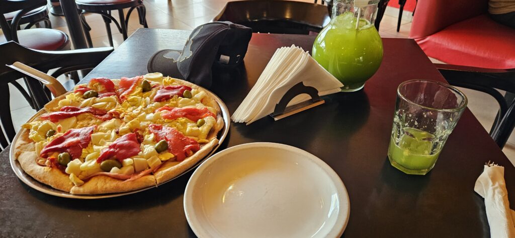 Zum Abendessen ging es zu einem Italiener für eine gute Pizza. Die Portionen waren allerdings riesig und ich habe mir noch etwas zum “Frühstück” mitgenommen.