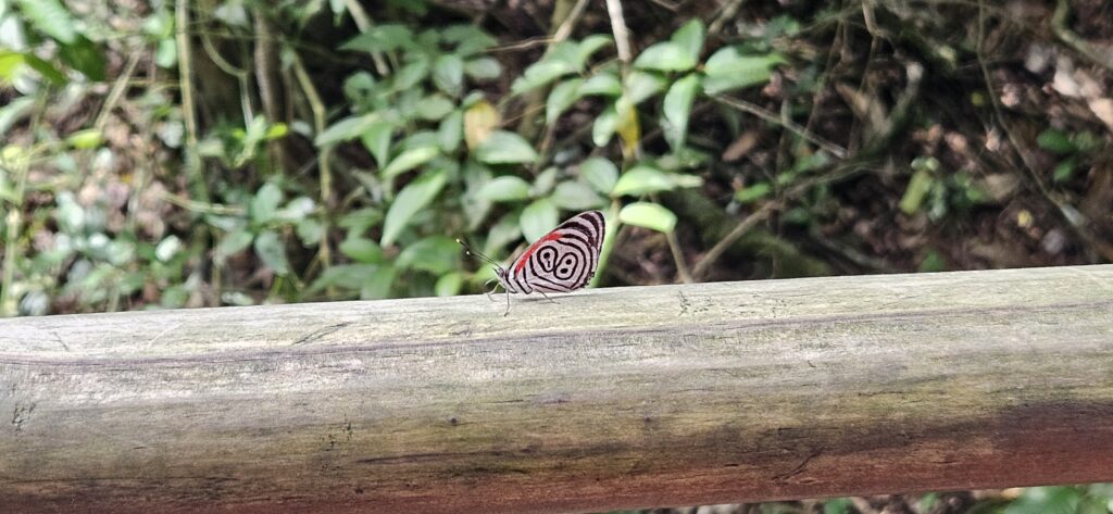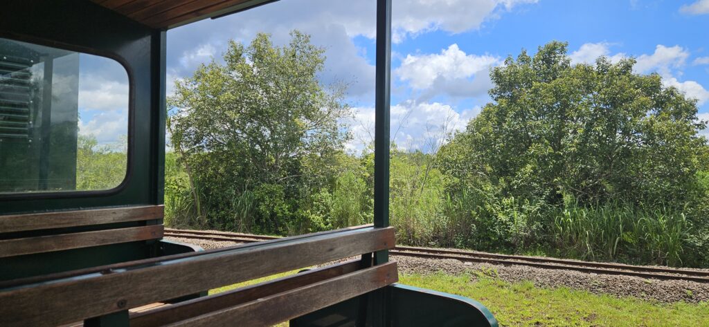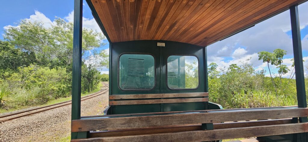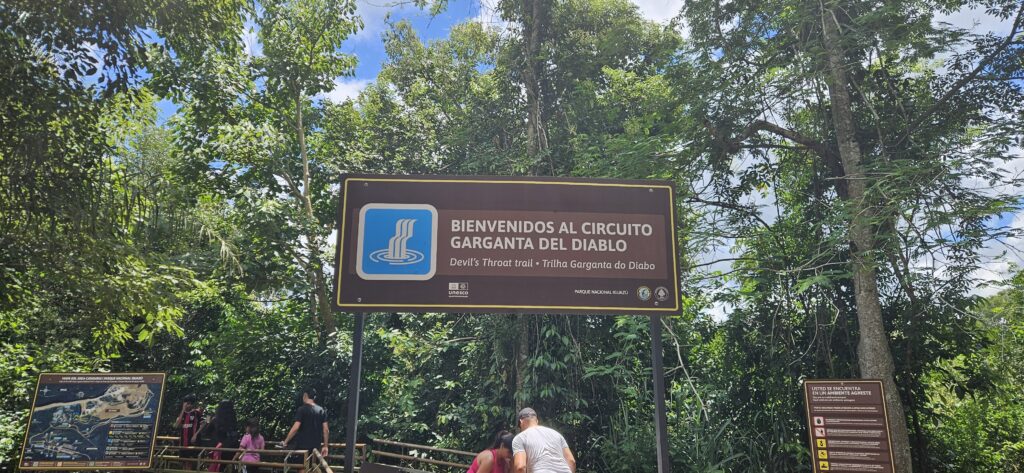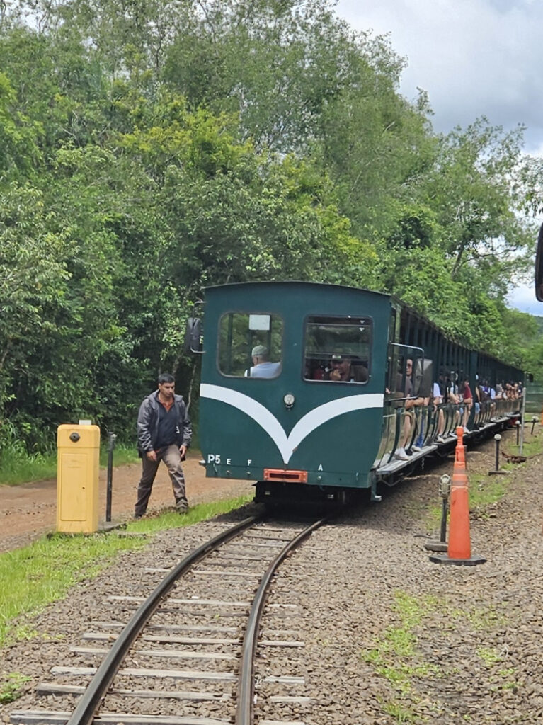 Im Park gibt es eine kleine Eisenbahn, die einen in die Nähe der Wasserfälle und zu den Wanderwegen bringt. Man kann aber auch selbst gehen. Zum entferntesten Punkt, dem Aussichtspunkt am “Garganta del Diablo”, sind es aber einige Kilometer und da ist bei den Temperaturen der Zug schon sehr willkommen. Leider kam ich gerade 5 Minuten zu spät an und musste daher eine Stunde auf den nächsten Zug zu ebendiesem Aussichtspunkt warten. In der Zwischenzeit bin ich in eine kleine Jaguar-Ausstellung gegangen, die aber doch sehr an Kinder gerichtet war und alle Schilder nur auf spanisch waren.