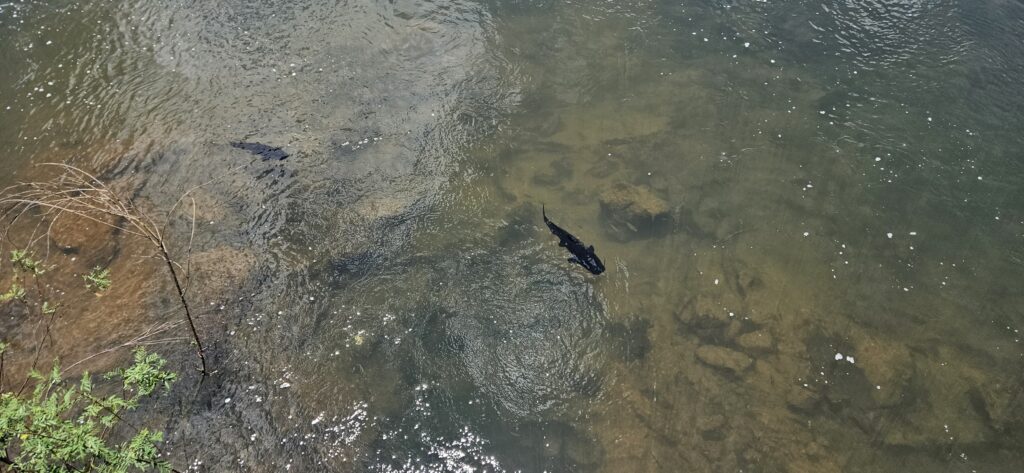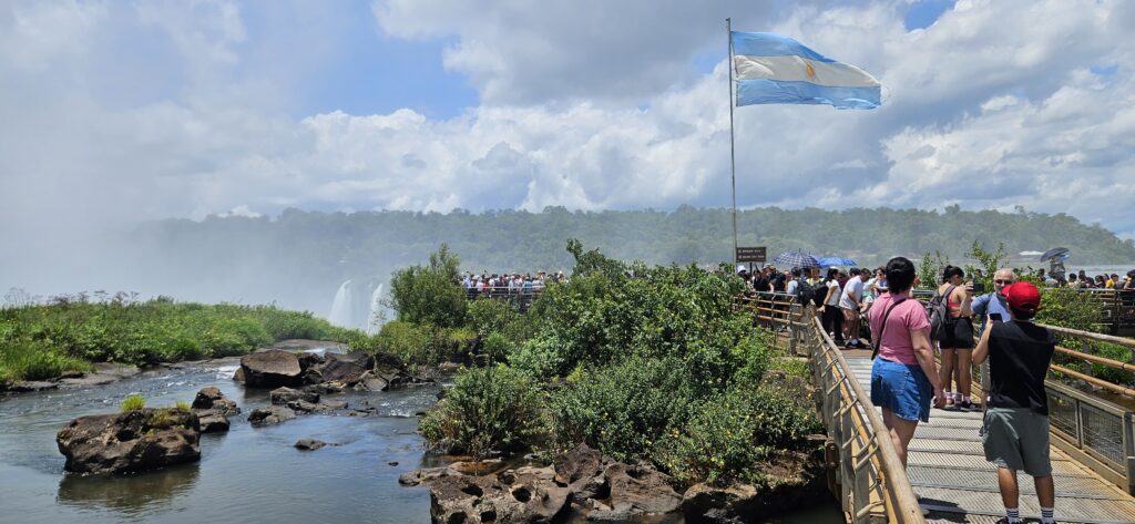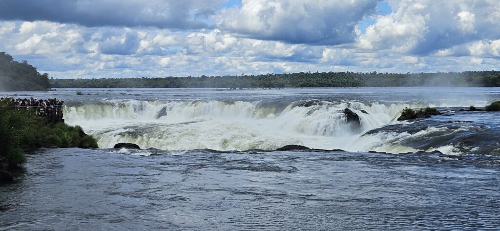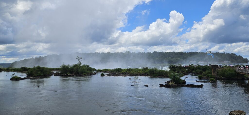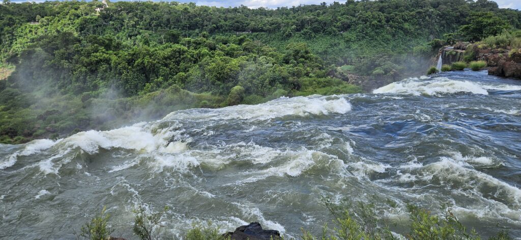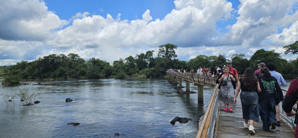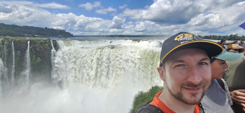 Nach etwa 20 Minuten Fahrt kamen wir dann auch schon am Beginn des “Wanderwegs” zum Garganta del Diablo an. Man geht dabei durchweg über Metallstege über den flachen, aber sehr breiten Fluss. Ab und an gab es mal einen Fisch zu sehen. Und es war sehr sehr voll. Vorallem am Ende des Aussichtspunkts. Für die Menge an Menschen geht es da leider etwas zu unorganisiert vor. Manche halten sich da sehr lange auf, anstatt nur kurze Unterbrechungen zu machen und weiterzugehen. Ich habe fast 40 Minuten gebraucht, bis ich auch mal etwas Aussicht hatte und nicht nur über die Köpfer herüberfotografiert hatte. Und dann herrscht dort natürlich solch ein Gedränge, dass es kaum möglich ist, ein ungestörtes Selfie mit etwas Hintergrund zu machen.