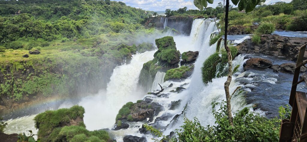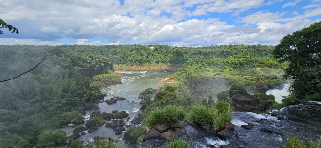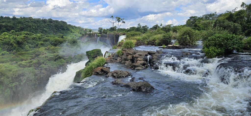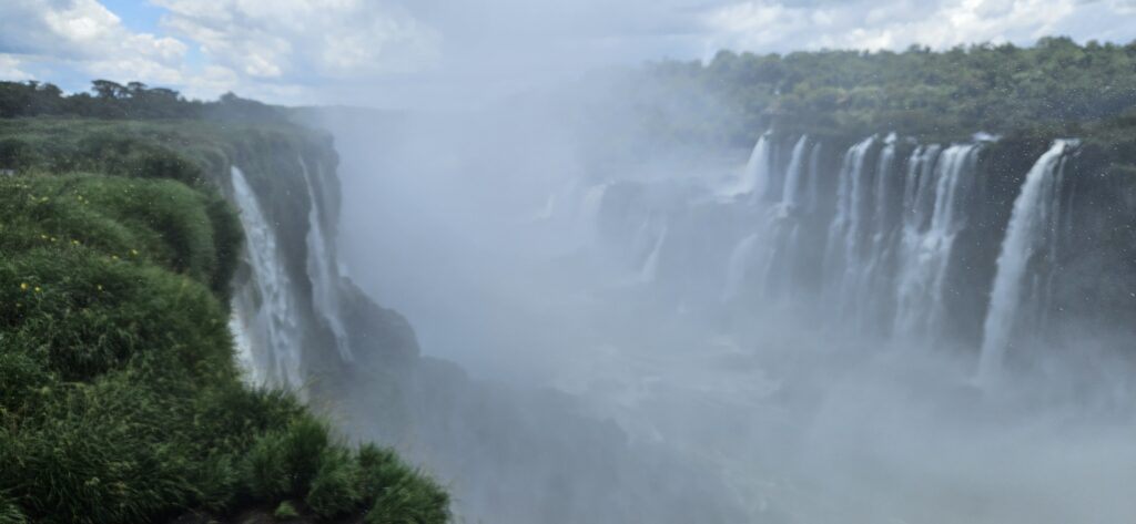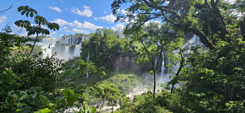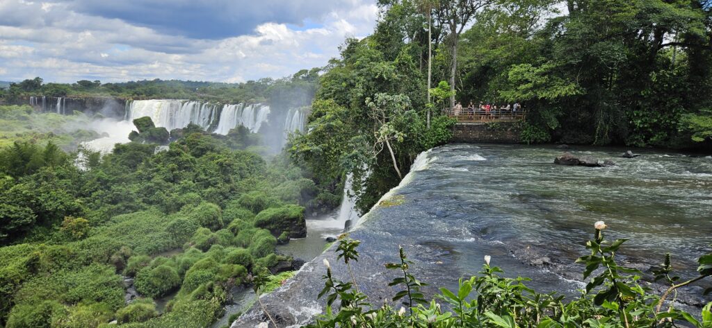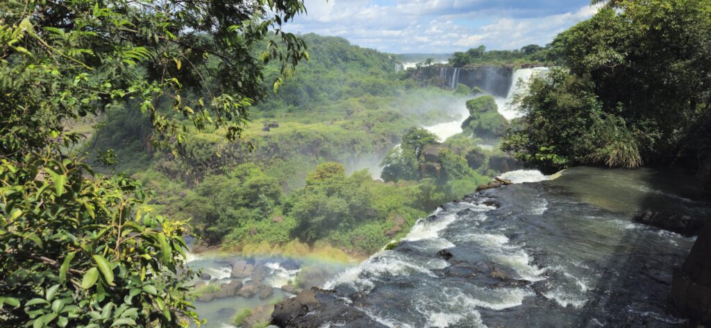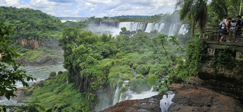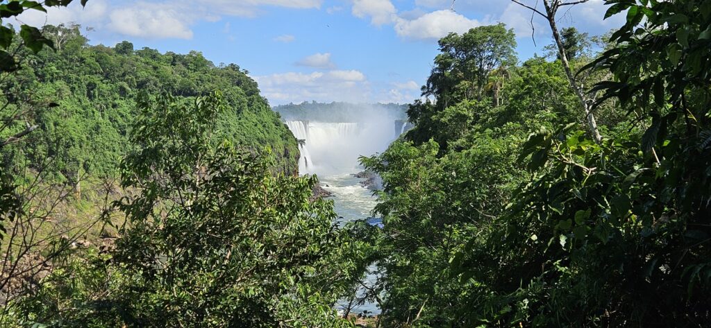 Danach ging es dann zum unteren Wanderweg. Dieser führt etwas weiter nördlich entlang und ist noch etwas weiter weg von den Wasserfällen, erlaubt dafür aber einen Blick vom Garganta del Diablo hinüber zu den schon von oben gesehenen Wasserfällen auf argentinischer Seite.