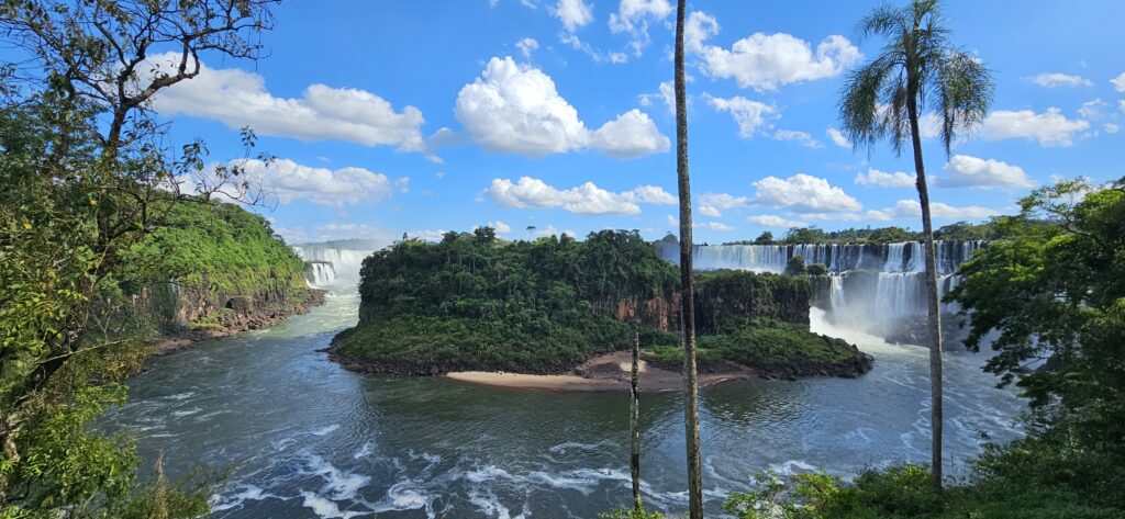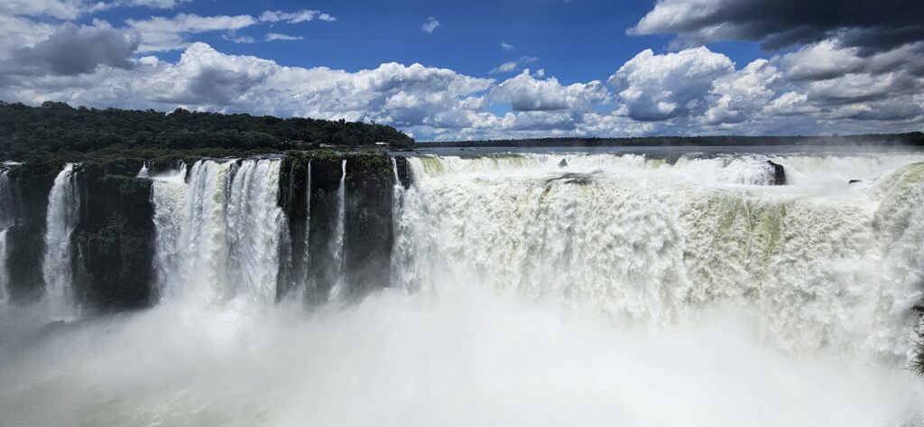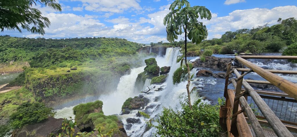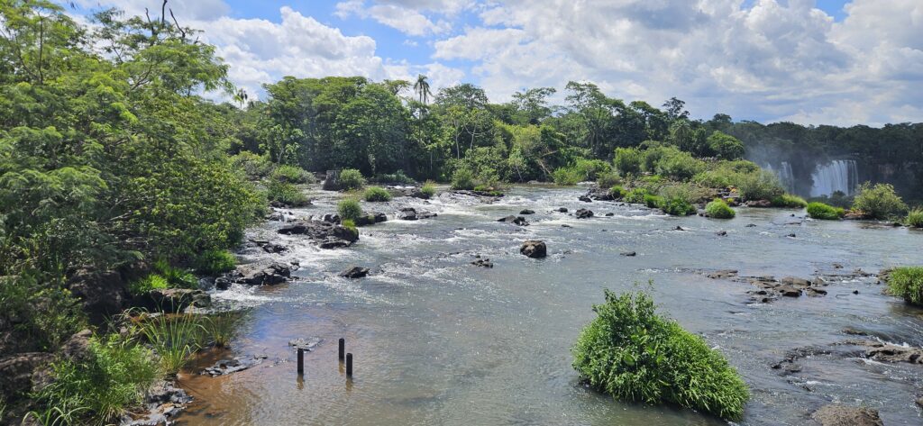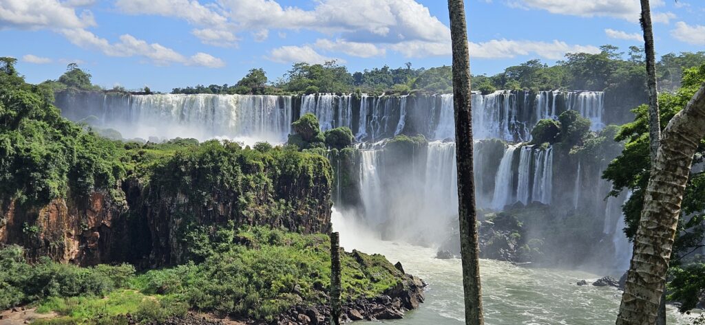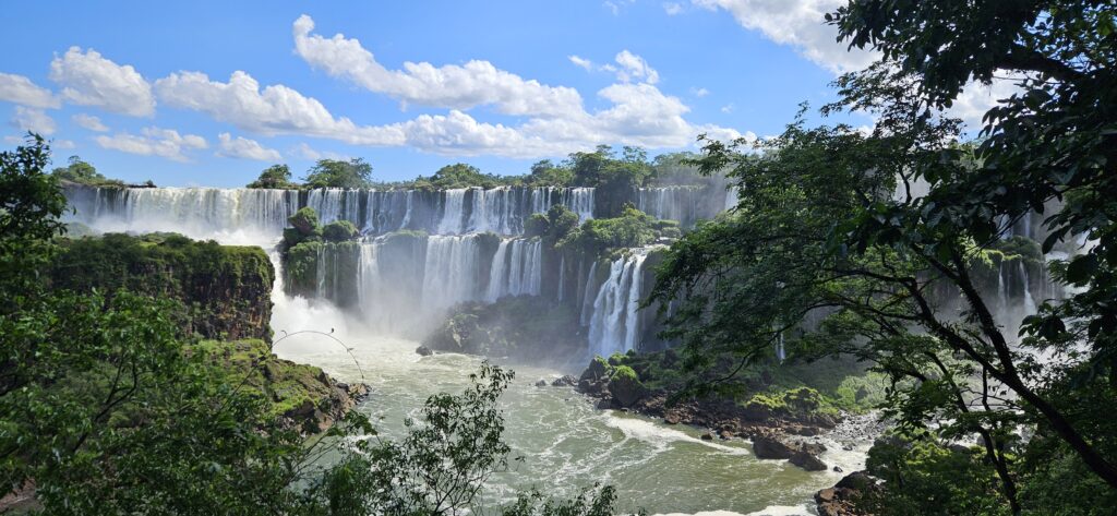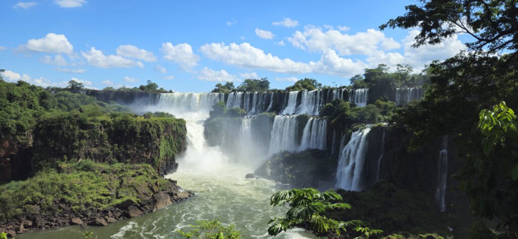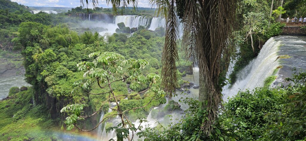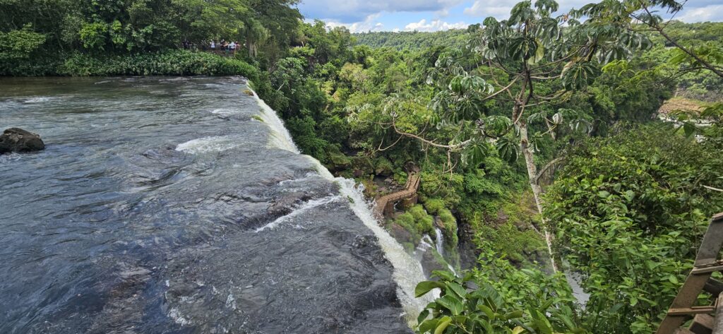 Danach ging es dann zum unteren Wanderweg. Dieser führt etwas weiter nördlich entlang und ist noch etwas weiter weg von den Wasserfällen, erlaubt dafür aber einen Blick vom Garganta del Diablo hinüber zu den schon von oben gesehenen Wasserfällen auf argentinischer Seite.