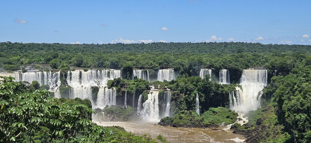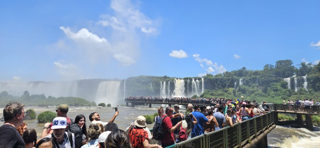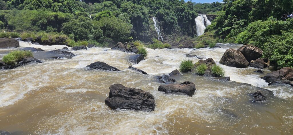 Ich stand gut eine Stunde an, um mir die Eintrittskarte zu kaufen sowie für den Transport mit einem Bus zum Wanderweg entlang der Wasserfälle. Hier gibt es nur den einen. Die anderen Wege führen durch den Dschungel, sollen aber auch ganz interessant sein. So viel Zeit hatte ich aber nicht im Gepäck.