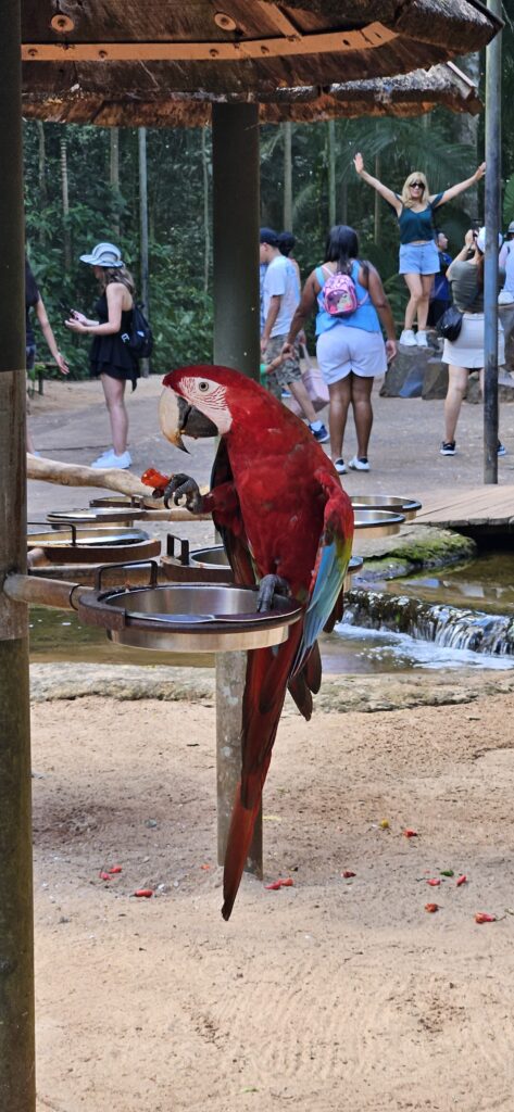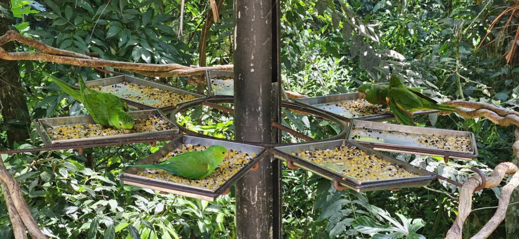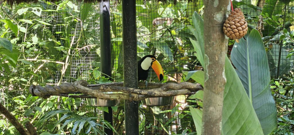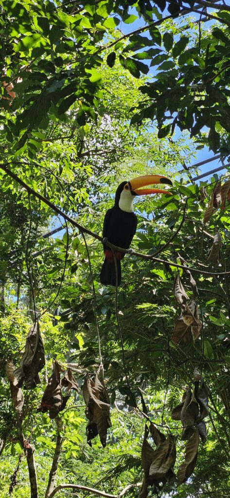 Nach dieser leichten Überdosis Wasserfälle hatte ich mir für den Nachmittag noch den Parque das Aves vorgenommen. Ein gar nicht so kleiner und wirklich schön angelegter Vogelpark direkt gegenüber vom Wasserfälle Nationalpark. Der Park inszeniert sich als Auffangstation verletzter und illegal gehandelter Vögel als auch als Zuchtstation bedrohter Arten – wie die meisten Zoos. Aber in freier Wildbahn waren hier bislang fast keine Vögel zu sehen, obwohl ein Großteil der gezeigten Arten hier heimisch sein sollte.