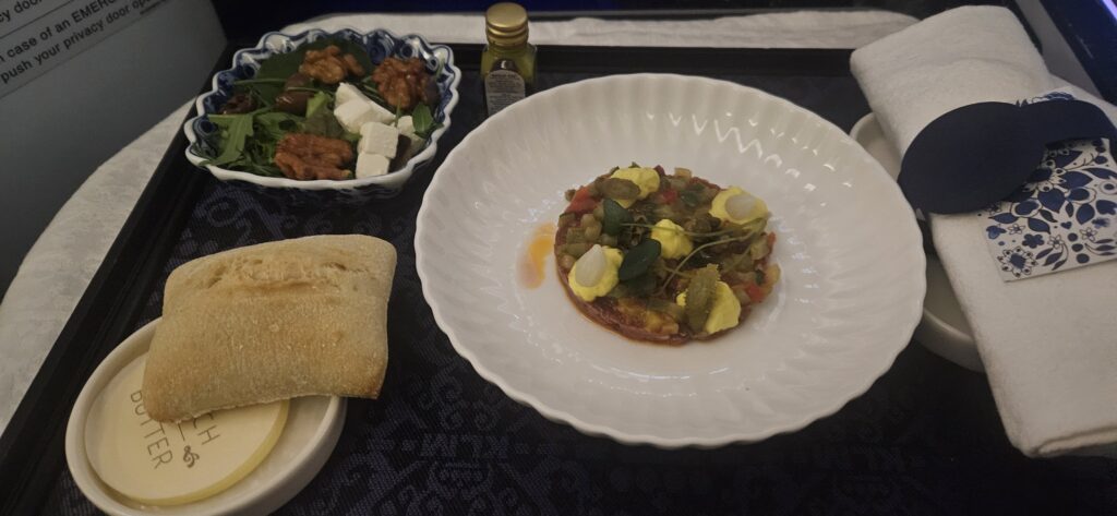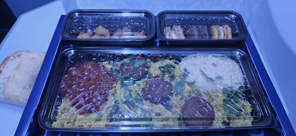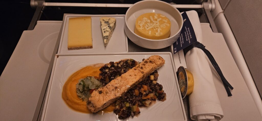 Im Paris Charles de Gaulle Flughafen habe ich es mir dann wieder in der Lounge bei leckerer Orangina bequem gemacht und zum Ende hin noch eine Kleinigkeit gesnackt. Überraschenderweise war der Flughafen total leer. Sowohl bei der Passkontrolle, als auch im Gepäckbereich oder der erneuten Sicherheitskontrolle, überall tote Hose und das auf so einem großen Flughafen. Auf dem Kurzstreckenflug nach München gab es dann aber gleich schon wieder eine richtige Mahlzeit, allerdings kalt – und wieder Lachs. Da hab ich wohl auf der Langstrecke die falsche Wahl getroffen…