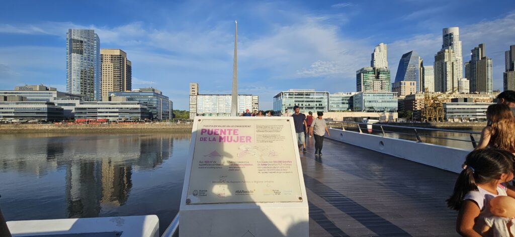 Gleich gegenüber ist die Puente de la Mujer und das Freizeithafengebiet mit vielen Restaurants und Bars.