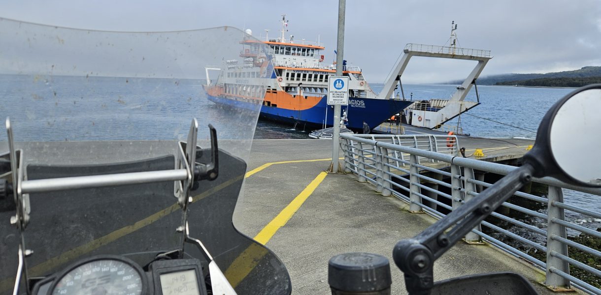 Statt wie geplant um 8 Uhr kam die Fähre erst um 9 Uhr in Chaitén an. Um etwas verlorene Zeit wieder gut zu machen, hatte …